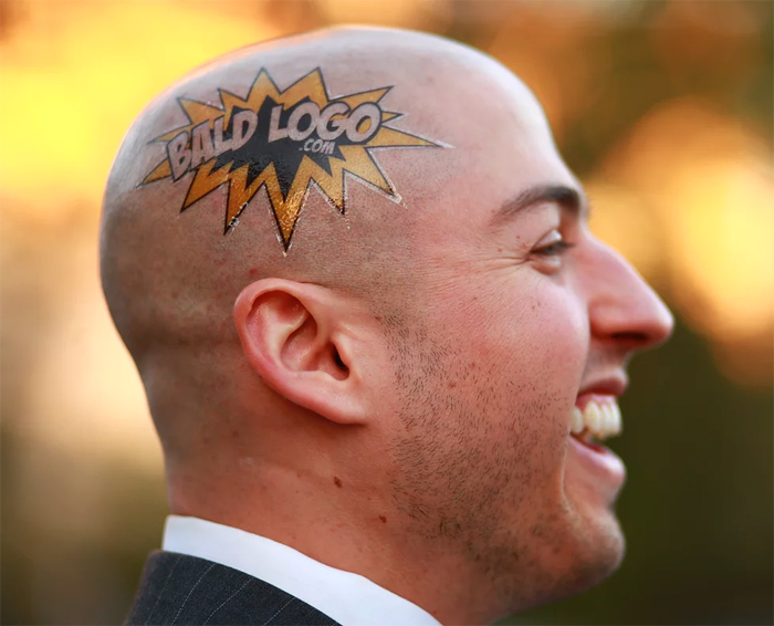 Он решил стать мобильным рекламодателем и сделал на своей лысине временные татуировки для некоторых брендов.